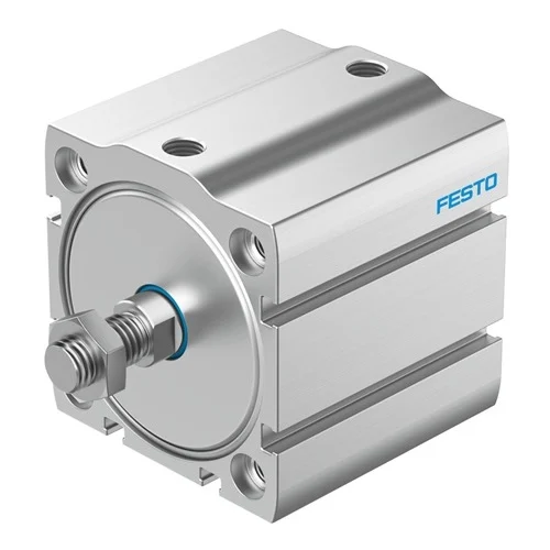 Utilizing the cylinder's high advance stroke force of 1870 N at 0.6 MPa to securely clamp metal components during automated milling or welding processes. The ultra-compact ADN-S design paired with the high 63 mm piston diameter allows the fixture to remain exceptionally small while delivering substantial holding power.