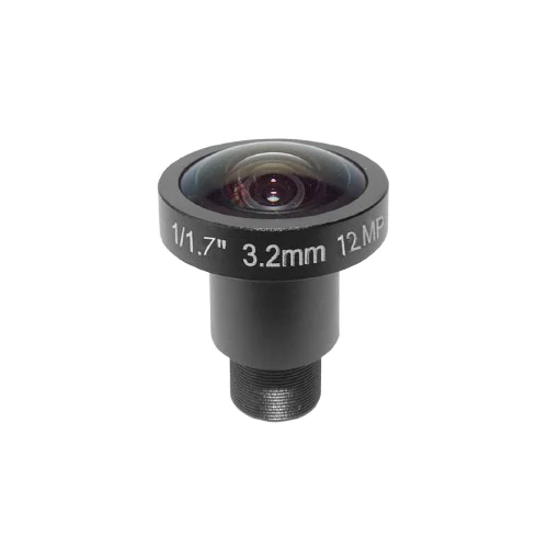 The Lensation B12M3220S117C is a high-resolution 12.00 MP S-mount lens designed for sensors up to 1/1.7" optical class. This fixed-focus and fixed-iris lens features a 3.2 mm focal length and a wide 131.0° horizontal angle of view, making it suitable for compact industrial imaging applications. It includes an integrated IR cut filter and supports a minimal object distance of just 0.03 meters.