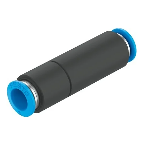 The Festo H-QS-8 is a high-performance check valve designed for pneumatic systems requiring a reliable non-return function. It features an anodized aluminium housing in a black finish and utilizes QS-8 push-in connections for simplified in-line installation. This valve is engineered to operate within a pressure range of -1 to 10 bar and supports a standard nominal flow rate of 681 l/min, making it suitable for a variety of industrial automation applications.