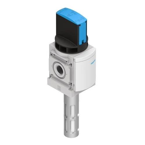 Used as a primary manual shut-off valve at the air preparation stage of high-speed automated packaging machinery to securely cut off supply and vent downstream air during routine servicing or maintenance.