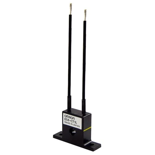 The Omron E54-CT1 is a solid-core current transformer engineered for precision metering and heater burnout detection. It integrates with Omron's advanced digital temperature controllers, including the E5AK and E5AC series. The unit supports up to a 50A input current and features a compact 5.8mm window diameter, chassis mounting capabilities, and fast-on quick connect terminals for robust panel integration.