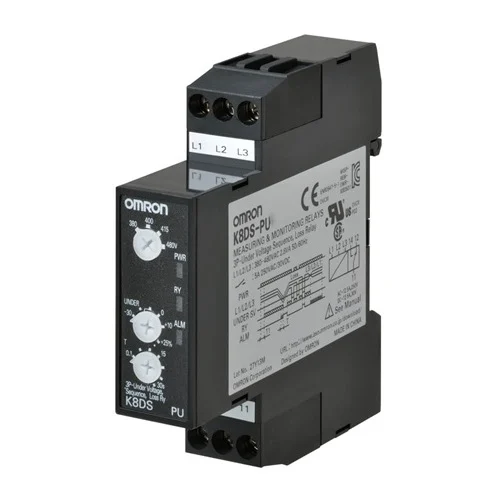 Problem SolvedOperating a 3-phase motor with a missing phase causes it to draw excessive current, while a reversed phase sequence spins equipment backward. The K8DS-PU2 mitigates both by instantly detecting the fault (< 0.1s) and tripping the motor contactor via its SPDT output.
