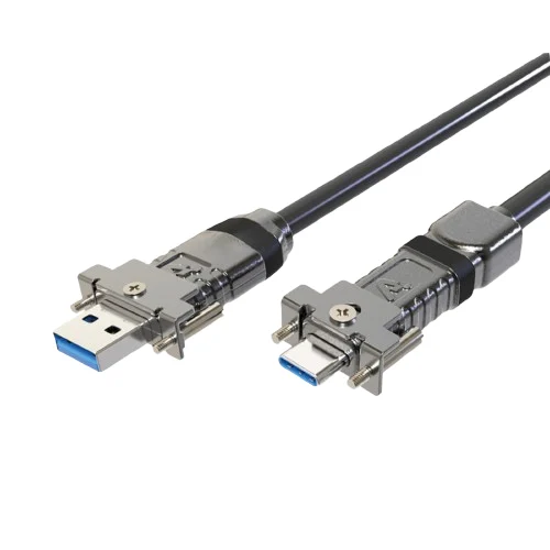 Problem SolvedOvercomes standard USB 3.0 length limitations and prevents accidental disconnections from constant conveyor vibrations by using a 10m active optical cable with secure screw-in connectors on both the USB-A and USB-C ends.