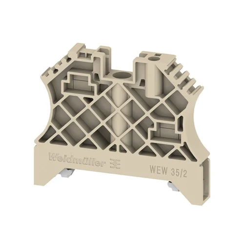 Mechanically locks terminal strips onto TS 35 DIN rails to prevent lateral sliding caused by machine vibration or thermal expansion.